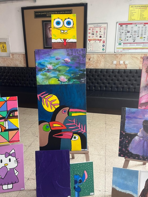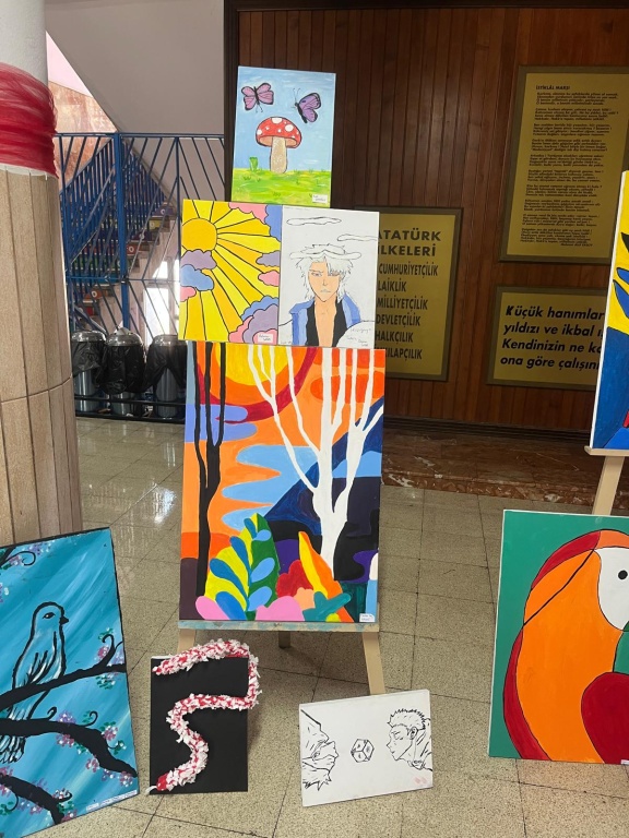 Okulumuz öğrencileri yıl boyunca yaptıkları çalışmaları sergilediler. Bu güzel çalışmada emeği geçen tüm öğrencilerimize ve Görsel Sanatlar öğretmenimiz Esra UYSAL’ a teşekkür ediyoruz.